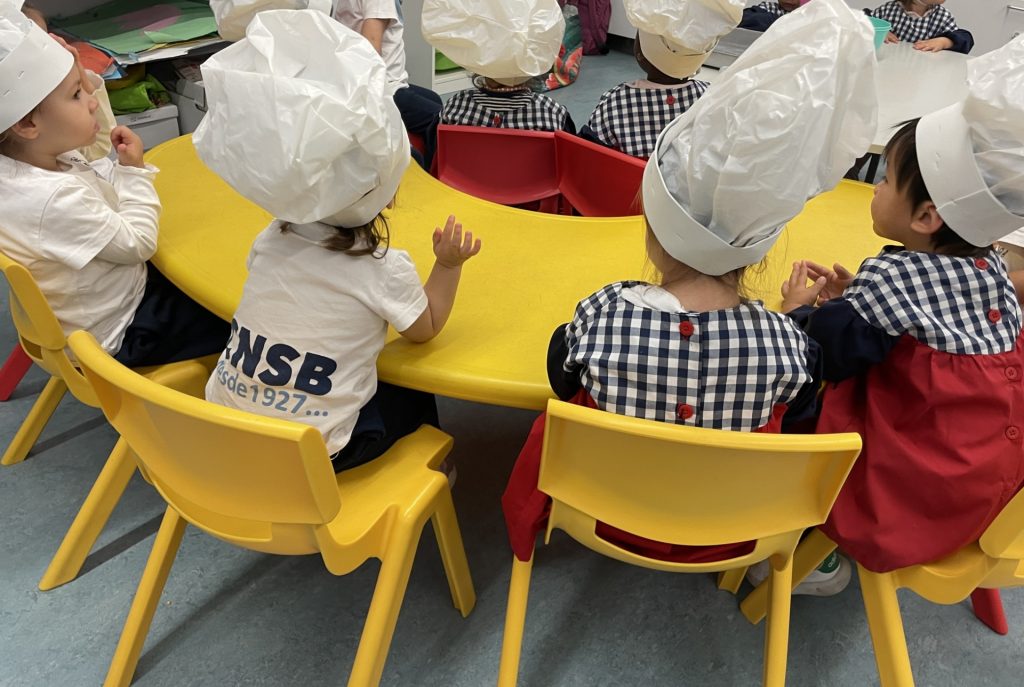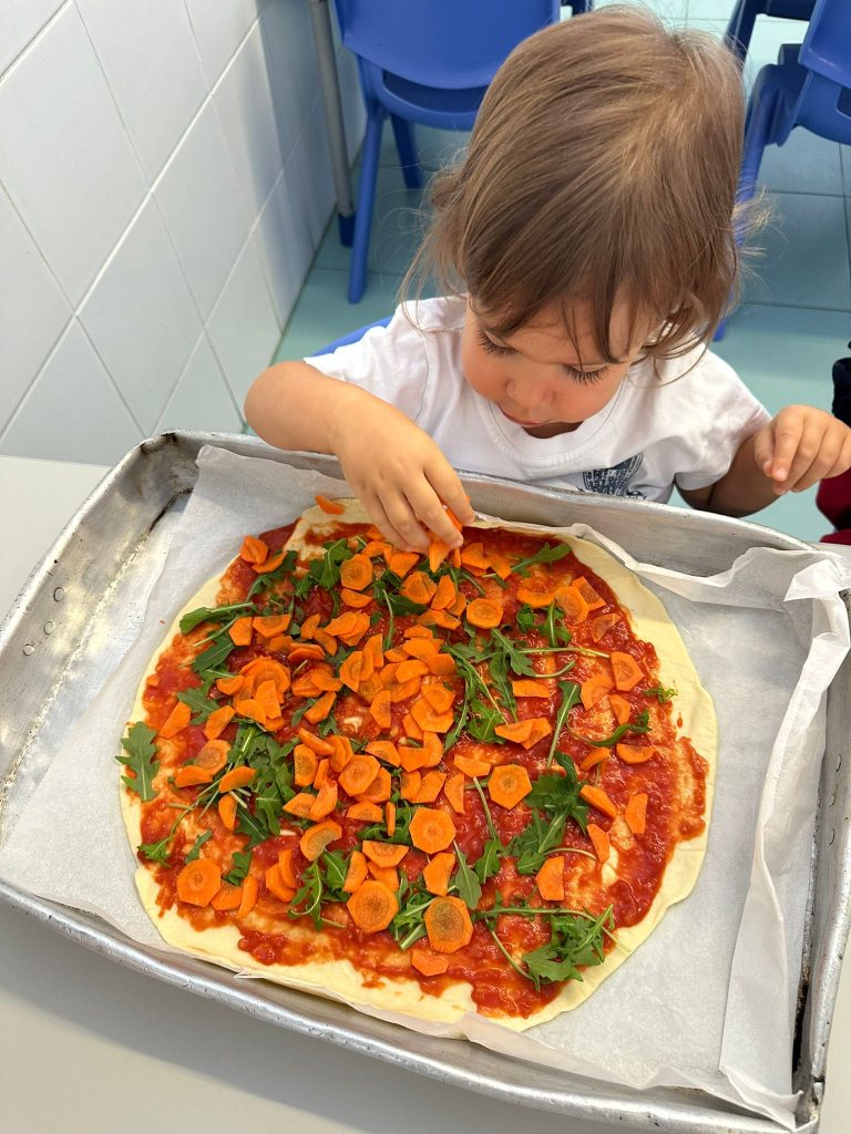 Nas salas de 2 anos, as crianças colaboraram na confeção de pizzas saudáveis. Uma experiência prática e divertida, que incentivou a autonomia e a valorização de alimentos nutritivos no dia a dia.