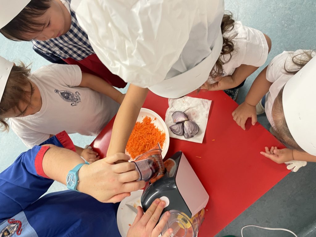 Nas salas de 1 ano, os mais pequenos tiveram a oportunidade de provar uma salada de frutas, explorando os sabores, as texturas e as cores de forma simples, mas muito significativa para esta fase do desenvolvimento.